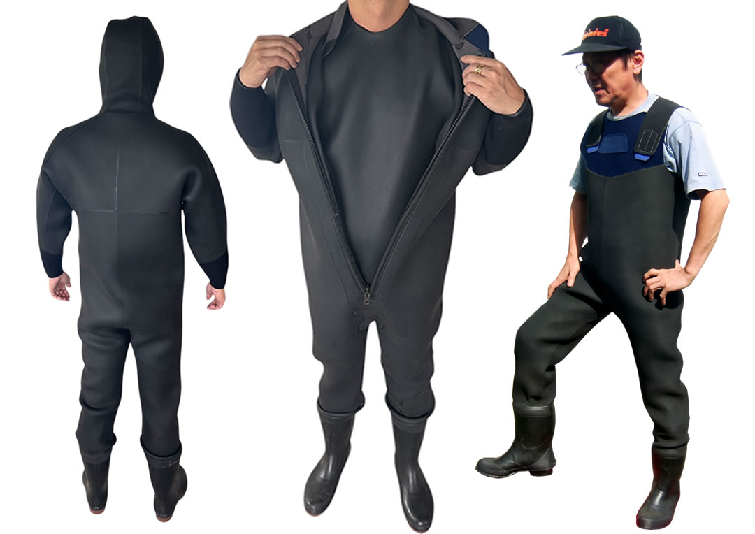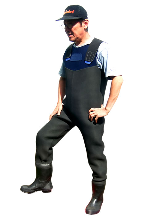 また、全身型胴付長靴 ・ 肩付胴付長靴を着たことがある方でも、自分の身体に合ったスーツを着たことがない方は 、なおさら、「重い」 「作業がし難い」と、思っている方が多いことでしょう。