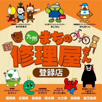 カノヤマリンは、九州7県の「ものを長く大切に使う」取り組みである「九州まちの修理屋さん」にウェットスーツ・ドライスーツ・胴付長などの修理屋さんとして登録されています。